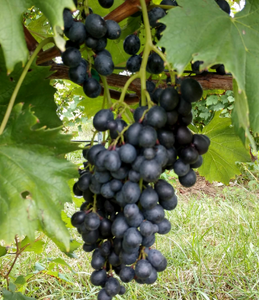 This black grape is highly productive and is highly resistant to botrytis. The berries are medium sized and loose with oval shaped berries that have deep color.  Tasting notes bring a bold plum color and intense flavor of black cherry, blackberries, aromas of vanilla, caramel and cinnamon.